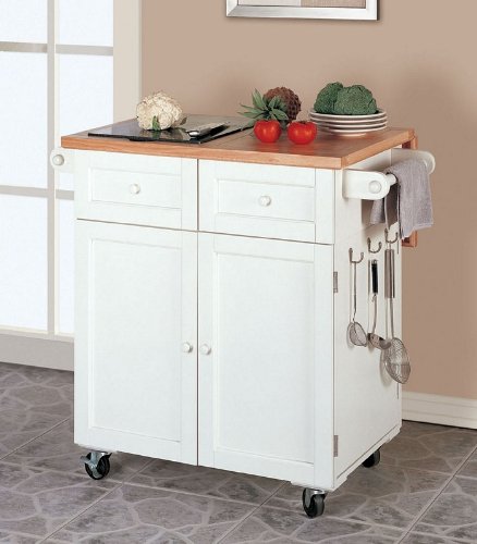 Kitchen Butler Cart with Granite Cutting Board in Antique White Finish Review